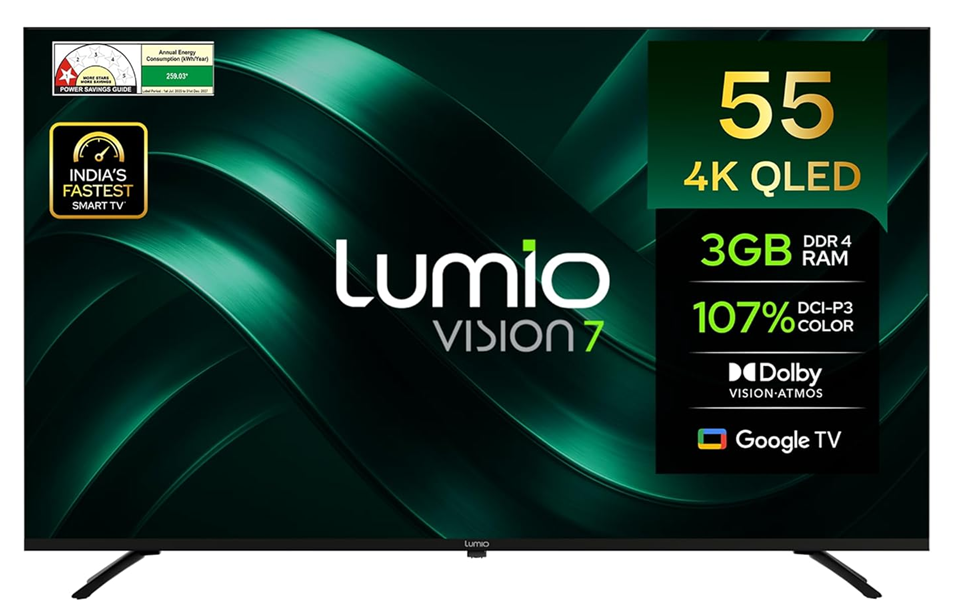 • Stunning QLED 4K display with Dolby Vision and vibrant colors.